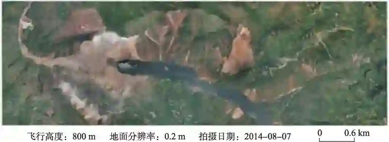 2014年8月3日16时30分,云南省昭通市鲁甸县发生6.5级大地震,武警部队历史上第一次全流程使用轻小型无人机应急侦测辅助决策,第一次实现了重大灾害下救援人员零死亡的良好成绩。鲁甸应急救援也是国家救援队第一次在重大应急中使用无人机实时传回高精度图片,现场实时指挥决策救援的应用,具有重大的里程碑意义,图10为救援现场航拍的无人机遥感影像图。
