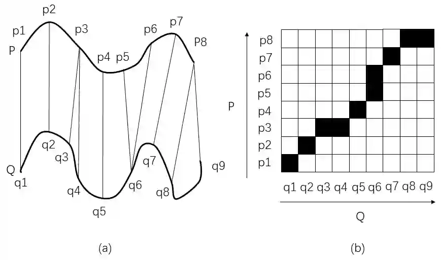 如图 1-8 所示,DTW 采用动态规划的算法思想,通过时间弯折,实现P和Q两条语音的不等长匹配,将语音匹配相似度问题转换为最优路径问题。DTW是模板匹配法中的典型方法,非常适合用于小词汇量孤立词语音识别系统。但DTW过分依赖端点检测,不适合用于连续语音识别,DTW对特定人的识别效果较好。