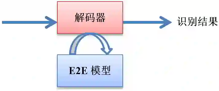 从2015年,端到端模型开始流行,并被应用于语音识别领域。如图1-12所示,传统语音识别系统的发音词典、声学模型和语言模型三大组件被融合为一个E2E模型,直接实现输入语音到输出文本的转换,得到最终的识别结果。