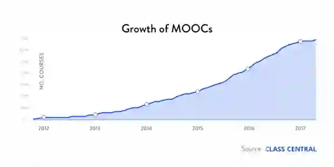 另一方面,我不确定为什么2017年的走势看起来趋于平稳。至少2016年之前,上升趋势看起来相当稳定。可就算慕课的发展已经达到饱和,这样的统计数据也是相当惊人的了。