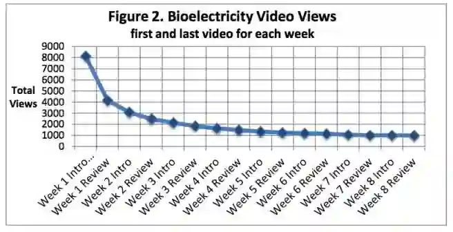 案例研究:12000人在Coursera上开始了第一次“生物电”慕课。其中,八千人打开了至少一个视频,一千人看了所有的录像,只有350人完成了这门课程。