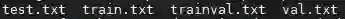 三个.txt文件里面分别是训练测试图片名称的索引,数据集准备到这就完成了