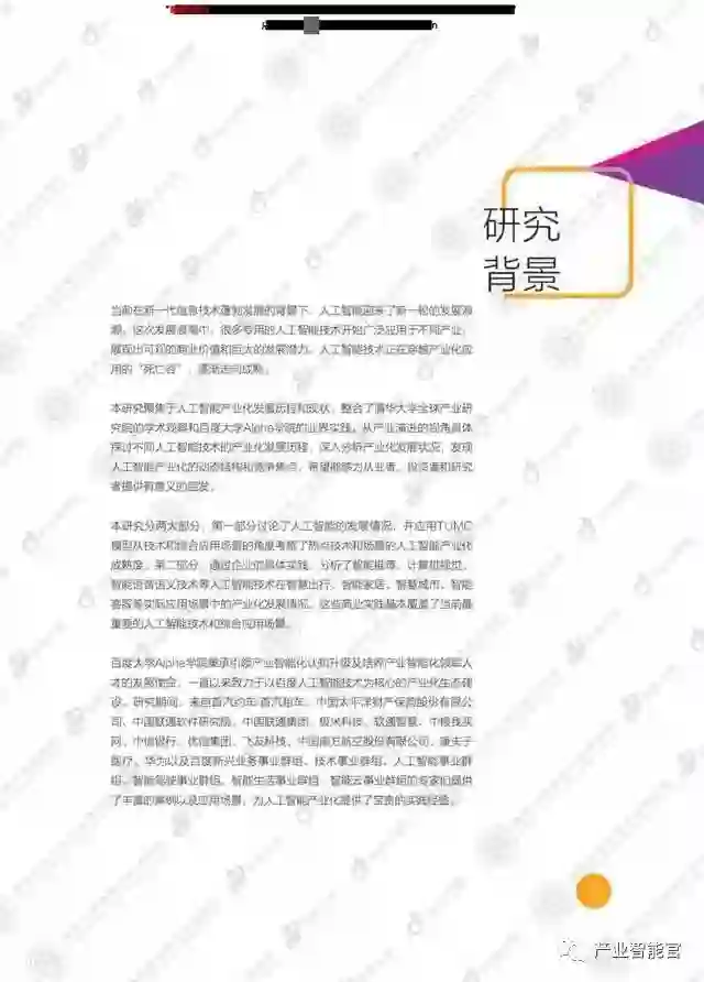 本研究聚焦于人工智能产业化发展历桯和现状,整合了清华大学全球产业研究院的学术观察和百度大学Apha学院的业界实践,从产业演进的视角具体探讨不同人工智能技术的产业化发展历程,深入分析产业化发展状况,发现人工智能产业化的动态结构和竞争焦点,希望能够为从业者、投资者和硏究者提供有意义的启发。