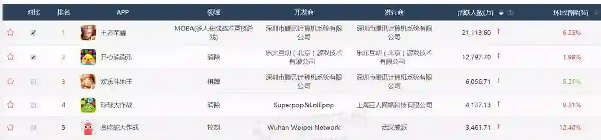 根据易观千帆的数据,月度游戏排名前列的除了第一名的王者属于MOBA,第八名的穿越火线属于FPS,其他都属于休闲类游戏。《开心消消乐》的排名仅次于《王者荣耀》,前者月活1.2亿,后者超过2亿。