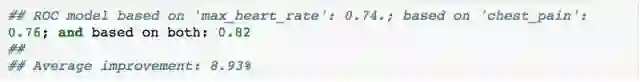基于heart_disease数据做出的R语言示例显示在考虑两个变量时预测成功率平均提高了9%而不是太差。😉这个改进的百分比是变量分组工作的成果。