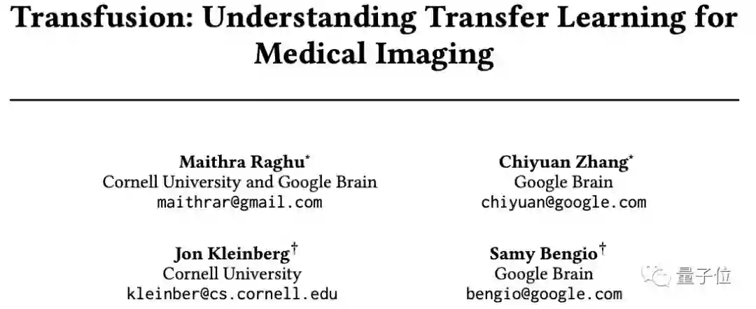 研究发现,即便使用ImageNet模型(预训练过的)中的前几层(early layers),也可以提高医学成像模型的训练速度和最终准确性。
