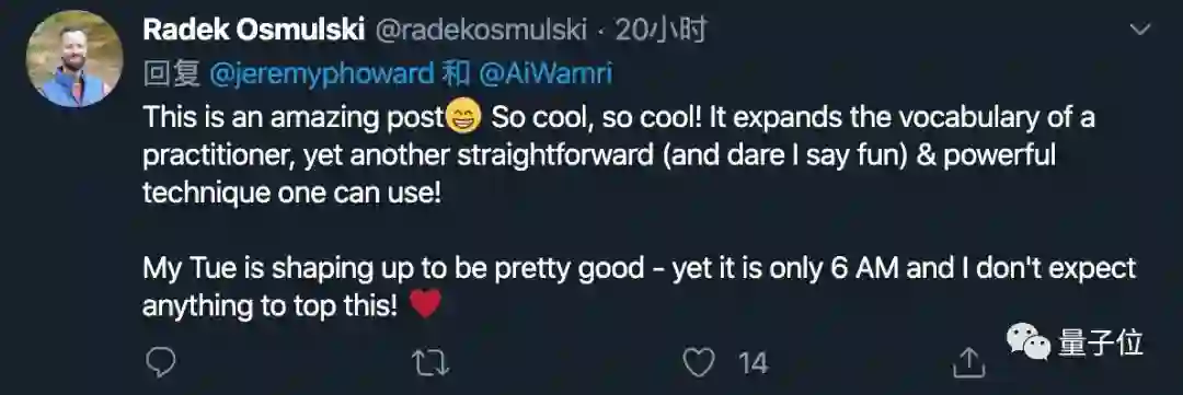数据科学家 Jeremy Howard 发布一条Twitter: