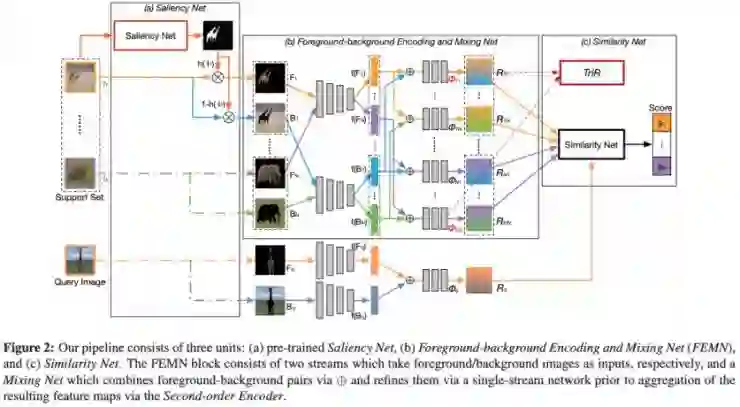 本文采用(在没有交集的类上)预训练的显著性模型分割前景和背景。作者训练了两个特征提取器,一个用于提取前景特征、另一个用于提取背景特征,还有第三个模型用来将前两种特征进行组合。显然,其缺点是你需要一个预训练好的显著性模型。我认为这是一个很棒的增强数据的方式,但是我不确定增强背景数据对于正确的分类有多重要(不像目标检测任务),如果你已经能够分割出前景,那么仅仅使用前景进行分类不是更好吗?