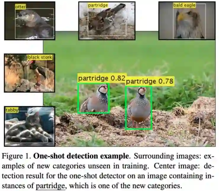 该博文的作者也参与了这篇论文的工作。在本文中,作者率先研究了小样本目标检测。他们的解决方案是将一种基于度量的方法(如原型网络)扩展到目标检测任务上。他们使用了一种现成的检测器架构(FPN-DCN),并使用一种基于度量的分类器替换了线性分类器头,在该方法中,对检测出的每个区域的分类是基于特征向量到学到的类别的表征的距离而得出的。论文作者建议为小样本检测问题使用一种新的对比基准,并且展示了该论文提出的方法相对于对比方法的提升。