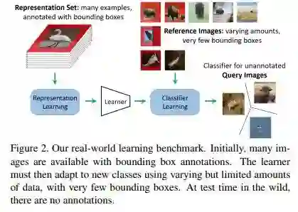 本文声称,标准的小样本学习对比基准测试是不符合现实情况的,因为它们使用的不同类别的数据是被人为设定成平衡的,而且测试时使用的是 5 类样本,因此本文作者建议使用一个新的数据集/对比基准。同时,让模型同时学习进行定位和分类;这样做显而易见的缺点是需要用到带有边界框标注的数据集。分类器是建立在原型网络之上的,但使用的特征向量是由聚合的前景和背景表征连接而成的。