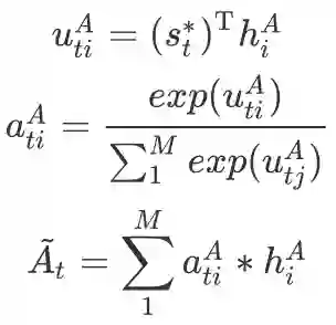 同样地,回答句中不同词对于判断其立场倾向的贡献也存在差异。我们用类似的方法有侧重地学习回答句的表示。,得到临时的立场表示