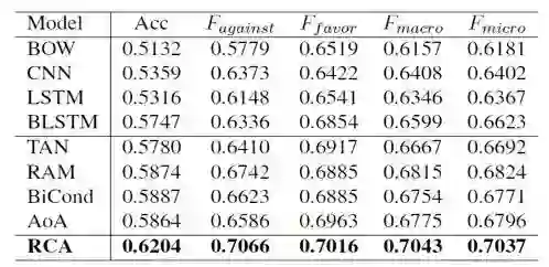 在本文中,我们针对社区问答中的立场分析任务(AnswerStance),开发了RCA模型,它通过建模问题句和回答句之间的相互表示,在多次阅读过程中不断提炼问答对的语义表示,逐步更新立场状态,并最终做出更准确的立场判断。