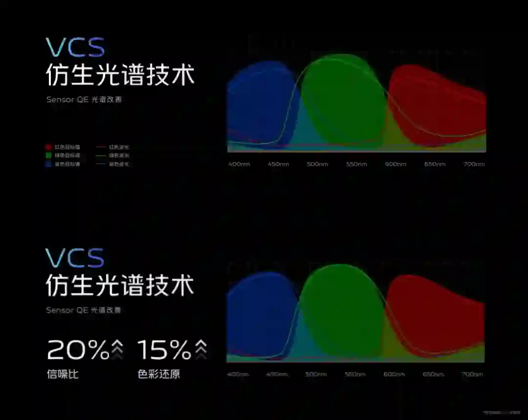 另外,已知人眼感知的可见光波长范围在 400-780nm,常规相机捕捉的波长范围自然也控制在这个范围内,但不是每款影像设备都可以准确地记录这些波长的信息。vivo 影像战略发布会中提及的“VCS仿生光谱技术”的加持下,通过 AI 算法精准捕捉和分析可见光波长,让 vivo X90 系列的图像信噪比将提升 20%,色彩还原提升 15%,也就是说成像画面更纯净,色彩也更接近于真实环境。
