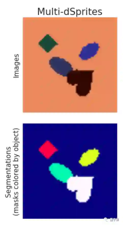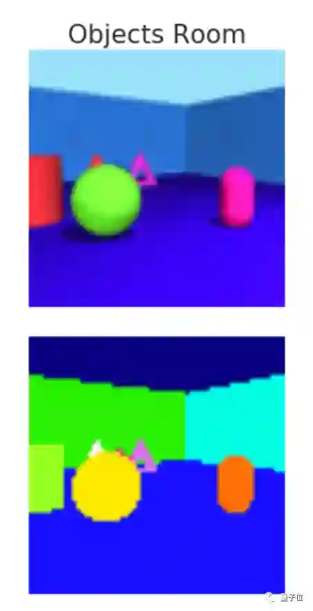 二娃是Objects Room,这个数据集基于生成查询网络(Generative Query Network)的MuJoCo 环境,是3D形状数据集的多物体扩充。
