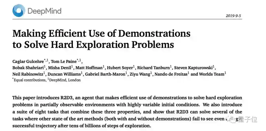 在论文Making Efficient Use of Demonstrations to Solve Hard Exploration Problems中,研究人员提出一种能够利用演示解决部分可观测环境中硬探测问题的智能体:R2D3。