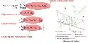 港科大沈邵劼老师团队的最新文章,他们的 VINS 在 VIO 领域具有很不错的开创性成果。现在他们切入自动驾驶领域做了这篇双目语义3D物体跟踪的工作,效果还是很不错的。在沈老师看来,SLAM 是一个多传感器融合的框架,RGB、激光、语义、IMU、码盘等等都是不同的观测,所以只要是解决关于定位的问题,SLAM 的框架都是一样适用的。在这篇文章中,他们将不同物体看成不同的 Map,一边重建一边跟踪。使用的跟踪方法仍然是传统的 Local Feature,而 VIO 作为世界坐标系的运动估计。语义融合方面,他们构造了4个优化项: