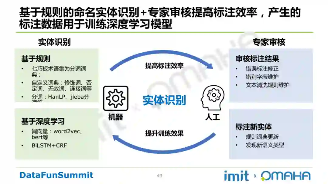 实体识别通过基于规则的命名实体识别+专家审核提高标注效率,产生的标注数据用于训练深度学习模型。具体流程如下所示: