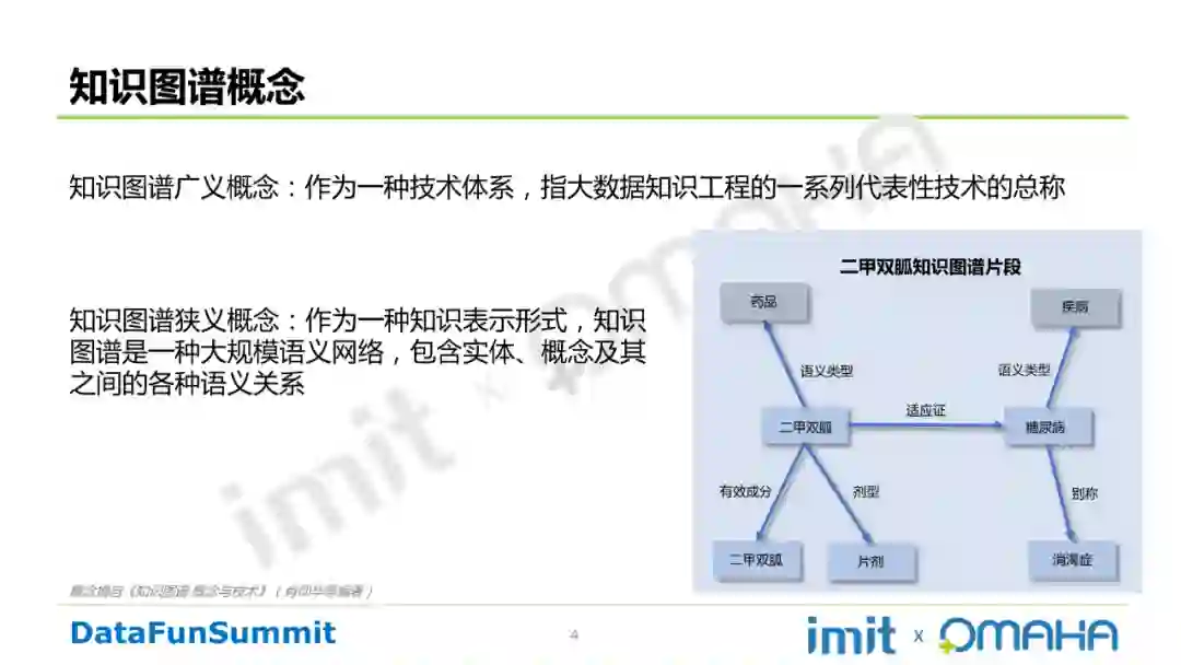 知识图谱狭义概念:作为一种知识表示形式,知识图谱是一种大规模语义网络,包含实体、概念及其之间的各种语义关系。如下图中的二甲双胍知识图谱片段。