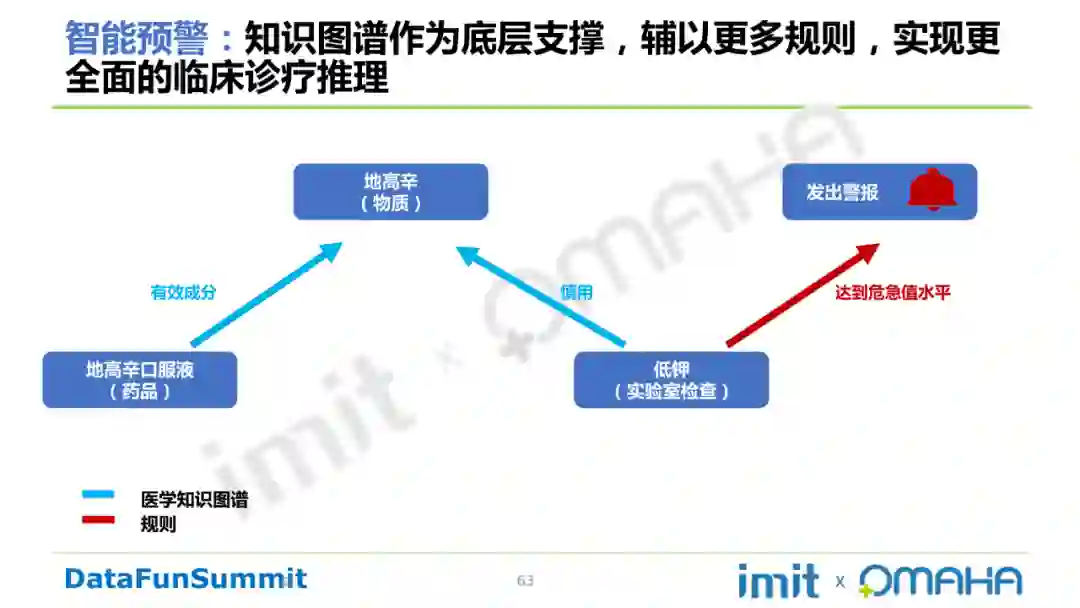 知识图谱作为底层支撑,辅以更多规则,实现更全面的临床诊疗推理。如下低钾案例所示:
