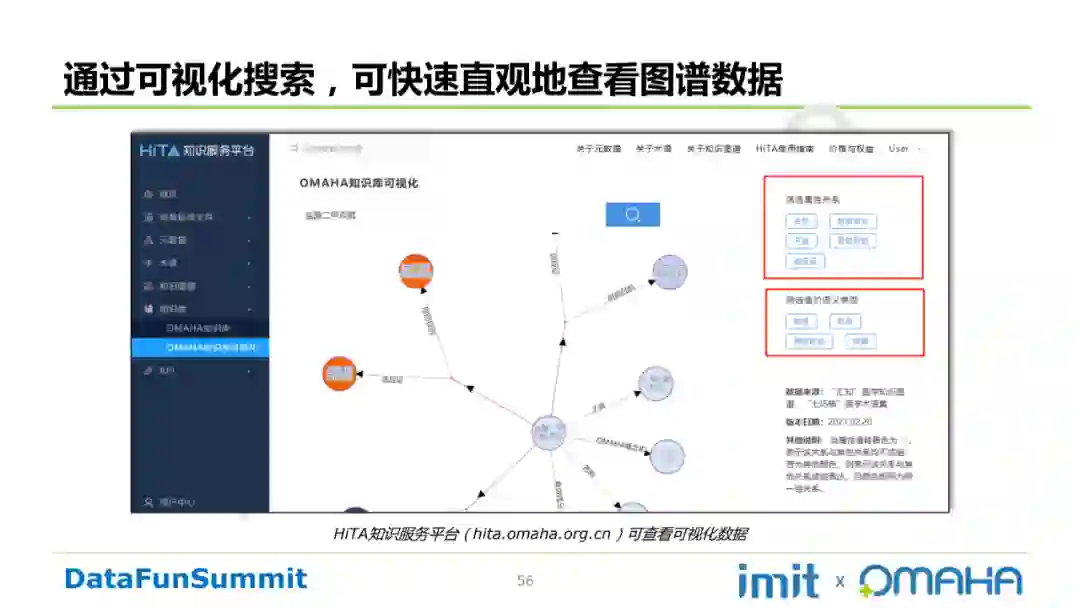 Step4:知识存储和检索。除传统的三元组外,加入“属性组”和“来源”字段,使知识表达更加准确,同时确保知识的可溯源性。保留三元组的来源,满足三元组在不同场景应用的需求。还可通过可视化搜索,快速直观地查看图谱数据,如下图所示: