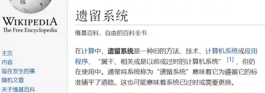 维基百科中对遗留系统的定义