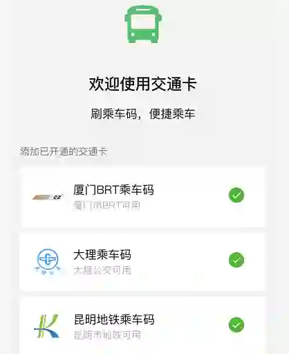 同时,用户可添加目前微信支持的其他城市乘车码。据腾讯方面介绍,乘车码以及第三方小程序都会出现在“交通卡”里,目前这一功能还是灰度中,只有一部分用户可以看到。