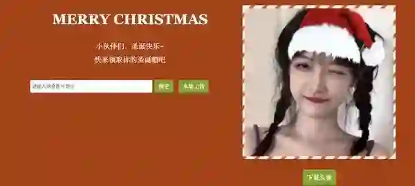 有了这个网站,你就能顺利在票圈装 13 了,不仅如此,你还可能因此邂逅一段完美的爱情!试想一下,当你发了这个网站在票圈后,女神看到了就会为你的技术所折服,然后主动把照片给你,让你帮她给头像戴上圣诞帽,然后你就顺利的得到了和女神搭讪的机会,然后赢取白富美,走向人生巅峰,想想还有点小激动呢。