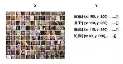 首先,为了在图片中识别出人脸,我们需要告诉机器什么样的脸是人脸,因此我们需要大量的人脸照片,并且标明里面的各种脸部特征数据,让机器去学习: