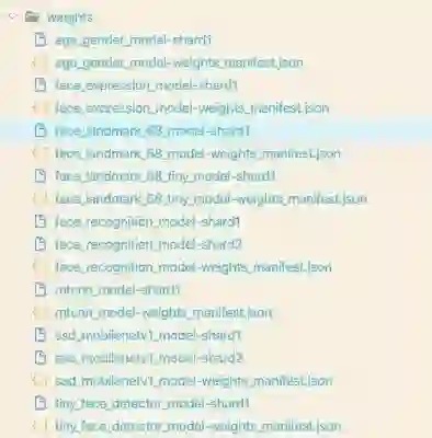 face-api 本身也提供了一系列的模型数据(/weights),可以开箱即用: