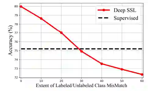 面对这种情况时,深度半监督模型的表现不再优异,甚至会出现性能大幅度下降的情况。