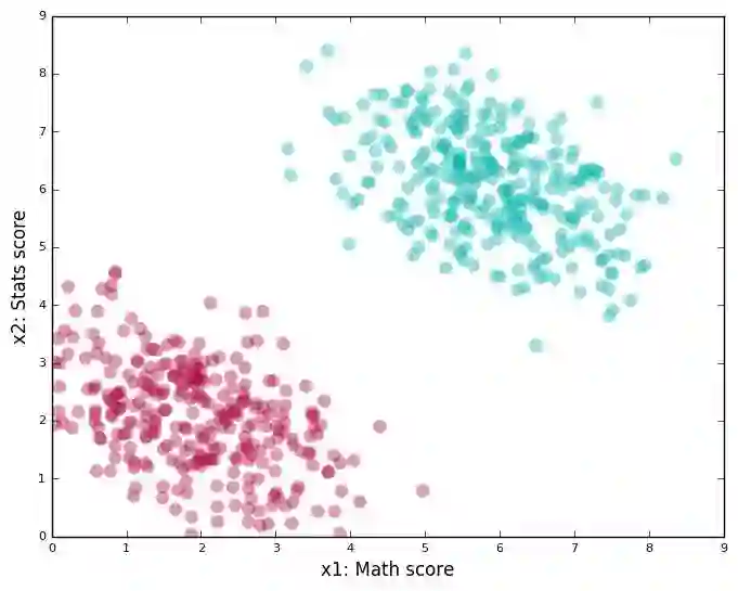 Say there is a machine learning (ML) course offered at your university. The course instructors have observed that students get the most out of it if they are good at Math or Stats. Over time, they have recorded the scores of the enrolled students in these subjects. Also, for each of these students, they have a label depicting their performance in the ML course: “Good” or “Bad.”