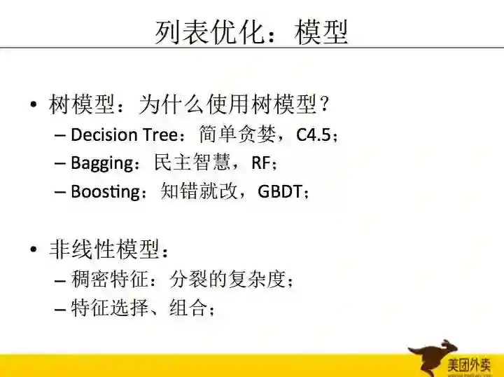 树模型擅长处理稠密、枚举类型特征,这个是为什么在美团树模型比较流行的部分原因,因为纯在很多像评分、距离这样的连续类型特征,这个是线性模型不太擅长处理的。