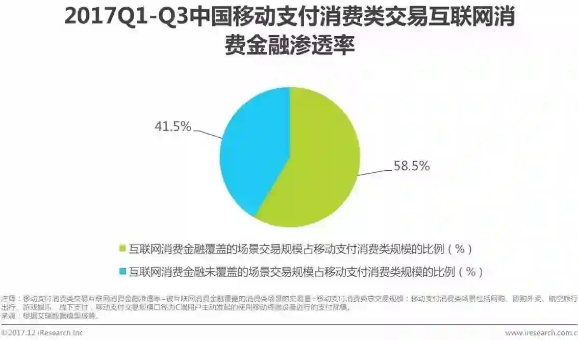 互联网消费金融覆盖场景交易规模占移动支付消费类58.5%