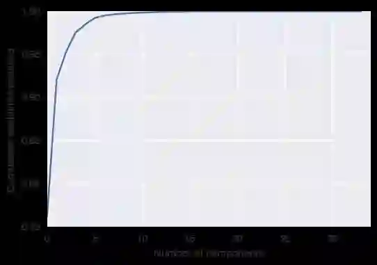 (3)特征降维。收集到的数据有可能会有非常多的特征,在机器学习中过多特征不一定能提高识别准确率,反而可能造成过拟合现象,并严重拖慢执行效率。主成分分析法(PCA)是一种常用的降维方法,它能根据特征间的相关性,选择出对识别最有用的特征。下图为PCA降维的效果图,可以看出前七个特征可以基本反映全部的信息量,而后面的特征包含的信息量很少,可以去除。