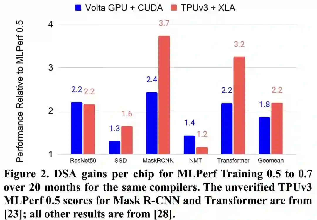 一些 DNN 具有上市时间限制,因为及时性可能会带来经济价值。在这种情况下,向后 ML 兼容性成为一种原则。新 CPU 的目标是相同的,即应该获得完全相同的结果,包括相同的异常行为和相关性能,从 TPUv2 开始,训练和围绕TPU生成的服务都是按照这种情况设计的。