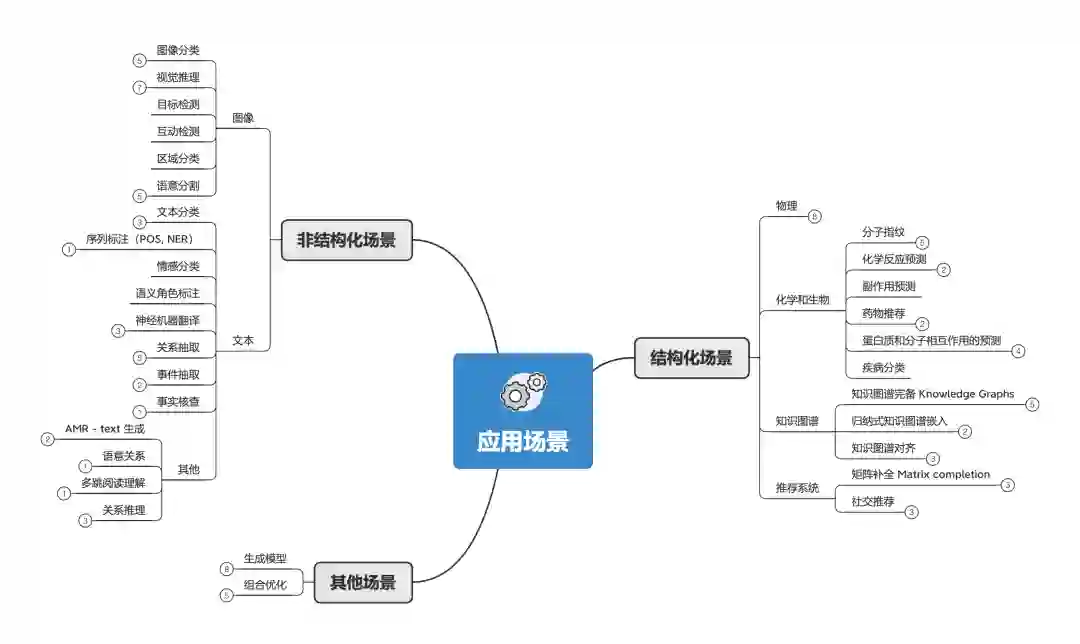 结构化场景 :数据是天然的图,数据之间有明确的关系结构,比如说物理系统、分子结构、知识图谱等。