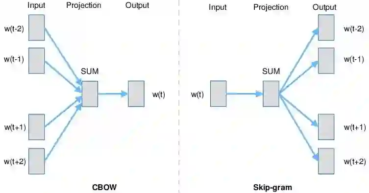 其中CBOW是采用词的上下文来预测该词,而Skip-gram则是采用词来预测其上下文。两者网络结构相似,通常所得到的词向量效果相差不大;但对于大型语料,Skip-gram要优于CBOW。