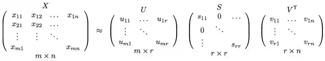 对于机器学习,SVD一个主要优点是对矩阵降维,对于高维矩阵 可以通过SVD表示成三个维度相对较低的矩阵 、 和 。