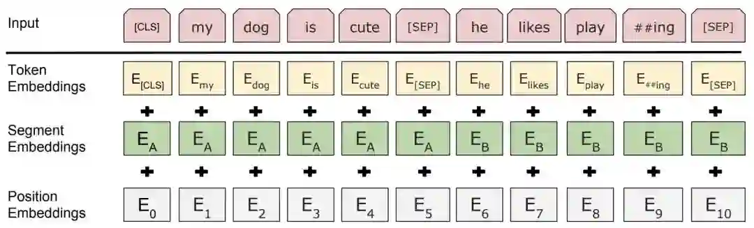 最后,[CLS]表示该特征用于分类模型,对非分类模型,该符合可以省去。[SEP]表示分句符号,用于断开输入语料中的两个句子。