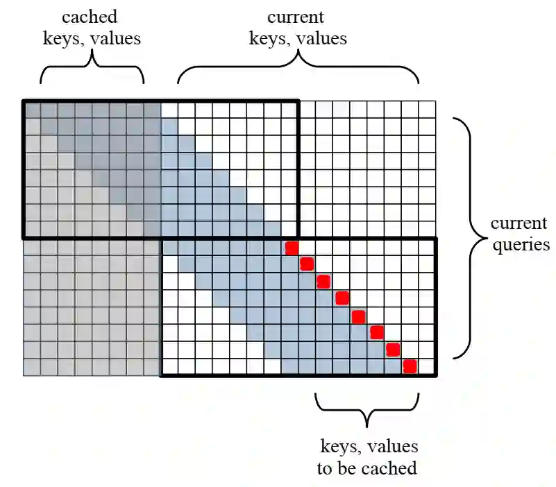 上图示例中,假设窗口长度为 8;相应地,输入文本也被分为长度为 8 的片段,交由 Transformer blocks 分别处理。图中浅蓝色区域表示了 attention 范围。