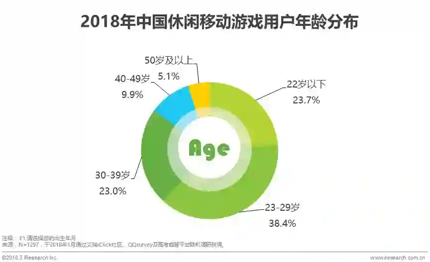 从调研数据中可以看到,相比于整体游戏市场中高达75.9%的男性玩家比例。受益于游相对较低的戏门槛,休闲移动游戏用户的女性占比明显更高。此外,在年龄分布上休闲移动游戏用户相较于MOBA、FPS等硬核游戏市场而言其用户年龄分布也更为分散,市场中不仅有大量(23.7%)22岁以下的学龄段用户,更是有高达37.9%的30岁以上用户。广泛的用户年龄段分布帮助整个市场在内容选题及玩法设定上都拥有更大的想象空间。