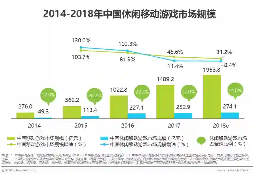 其中移动游戏整体市场增速的放缓,及休闲移动游戏市场面临创新瓶颈是导致市场增长放缓的两大核心原因。首先,自2016年起随着市场人口红利的快速消耗,整体移动游戏市场增速开始放缓。而移动游戏市场大盘增速的放缓,也在一定程度上影响了休闲移动游戏市场的发展。其次,休闲移动游戏本身市场面临创新瓶颈,尤其是在2017年年中,市场中的新兴优质产品十分稀缺,最终导致休闲移动游戏市场整体竞争力及用户粘性的下降。若未来能够有优质新品游戏陆续推出,整体市场增速仍将有望迎来反弹。