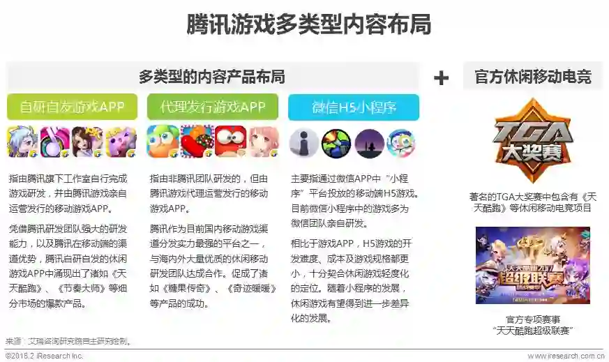 腾讯是目前在国内休闲移动游戏领域布局最为广泛的企业