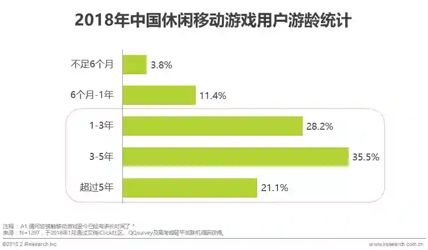 中国休闲移动游戏用户中有高达84.8%的用户接触移动游戏的时长超过1年,其中更是有56.6%的用户是玩移动游戏已超过3年的“老司机”。这也表示着整体休闲移动玩家已经具有较好的游戏市场教育。