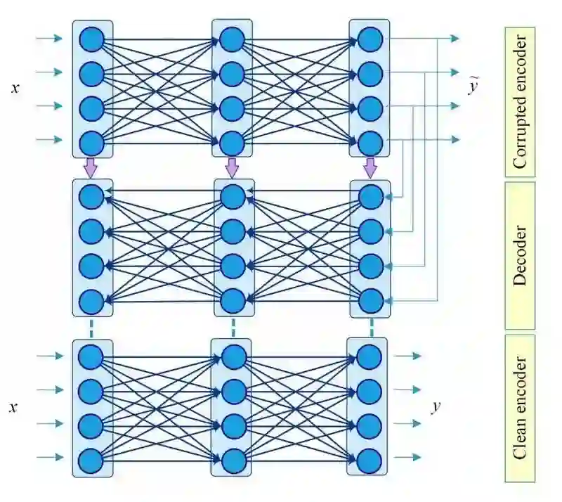 阶梯网络在无监督和半监督学习任务中达到了先进的水平。阶梯网络由两个编码器和一个解码器组成。编码器作为网络的有监督部分,解码器进行无监督学习。训练目标是最小化有监督部分和无监督网络的损失和。