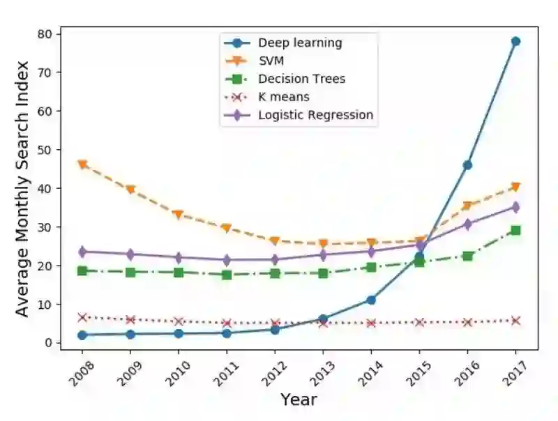Google Trend 显示近几年对深度学习的关注呈上升趋势。