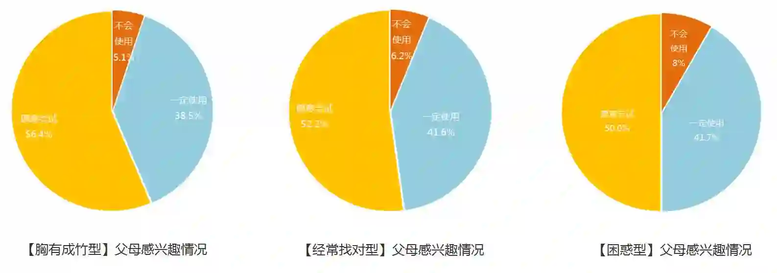对比几种类型的父母:不仅“困惑型”,就连“胸有成竹型”和“经常找对型”也对该技术抱有强烈的兴趣。