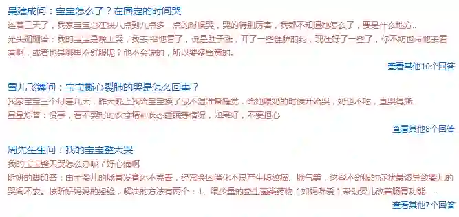 例如下图这些就是不错的入口,宝宝哭的频次远远比打疫苗、起名字这些高,是吧?