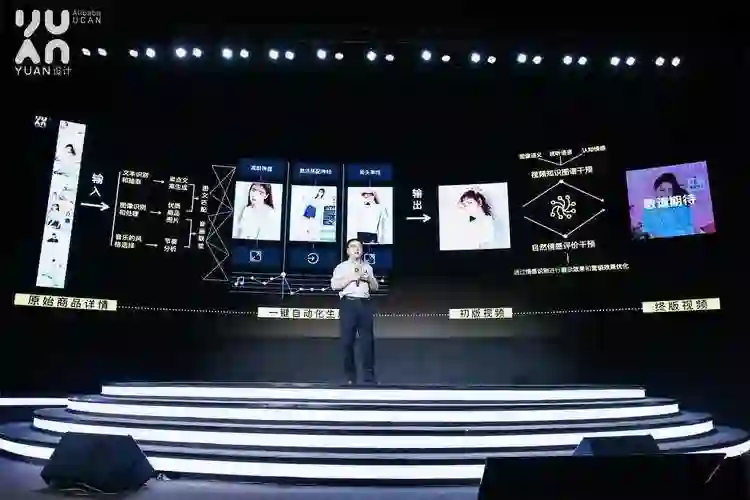 「纯粹从时间看,如果把淘宝 20 亿的商品,在一年内都生成短视频,大概需要 50 万的设计师,这样是做不到的。我们萌生了这样的想法,能够真正帮助到商家做这样的事情。从内容的提取,关键词的抽取最后合成,包括里面的情感计算,怎么样找到对的音乐能够有正向情绪的延伸,最后合成在里面。」