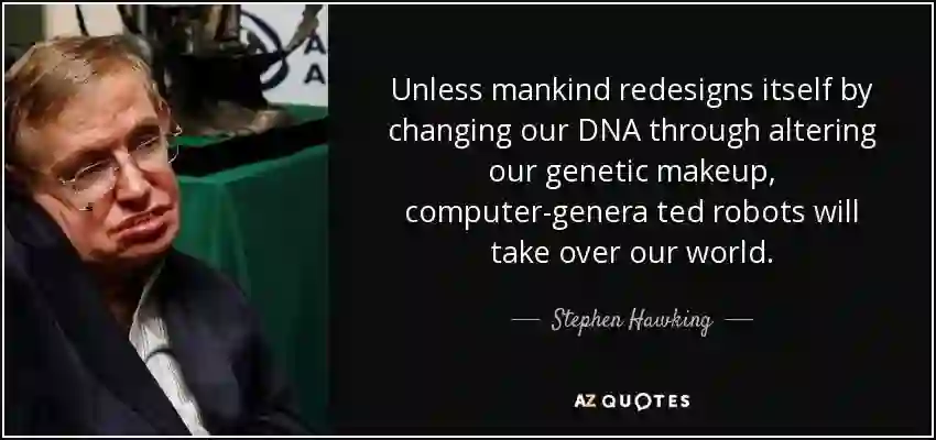 霍金预计,一旦通过基因改造成“超级人类”,或者智力更高,寿命更高,对疾病抵抗力更强的“变种人”,那么“未能得到改造普通人类”,将无法与拥有更好基因的“超人类”竞争。他担心,人类会因此而展开“自我设计”的竞争,到时候基因编辑不仅会被权贵占为己有,打造“超人”种族,而且因为这个基因改造的“超人”种族主宰世界,迫使正常的普通人乃至全人类面临毁灭性的灾难。